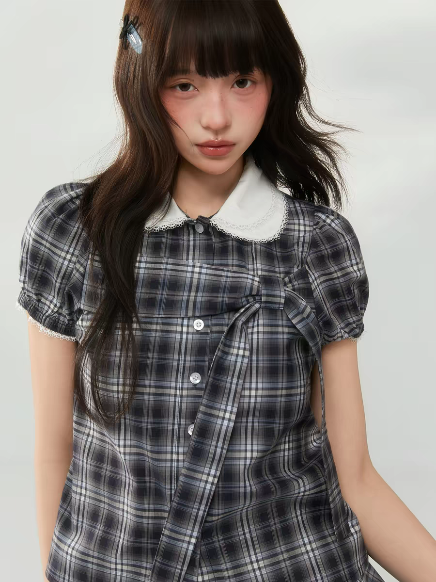 Комплект «Черно-белая клетка» с воротничком и завязками - юбка
