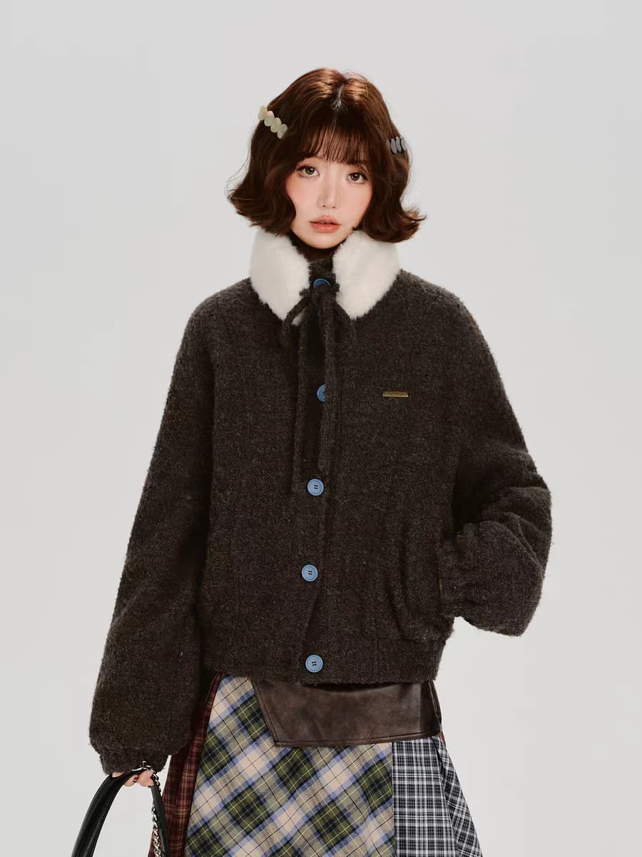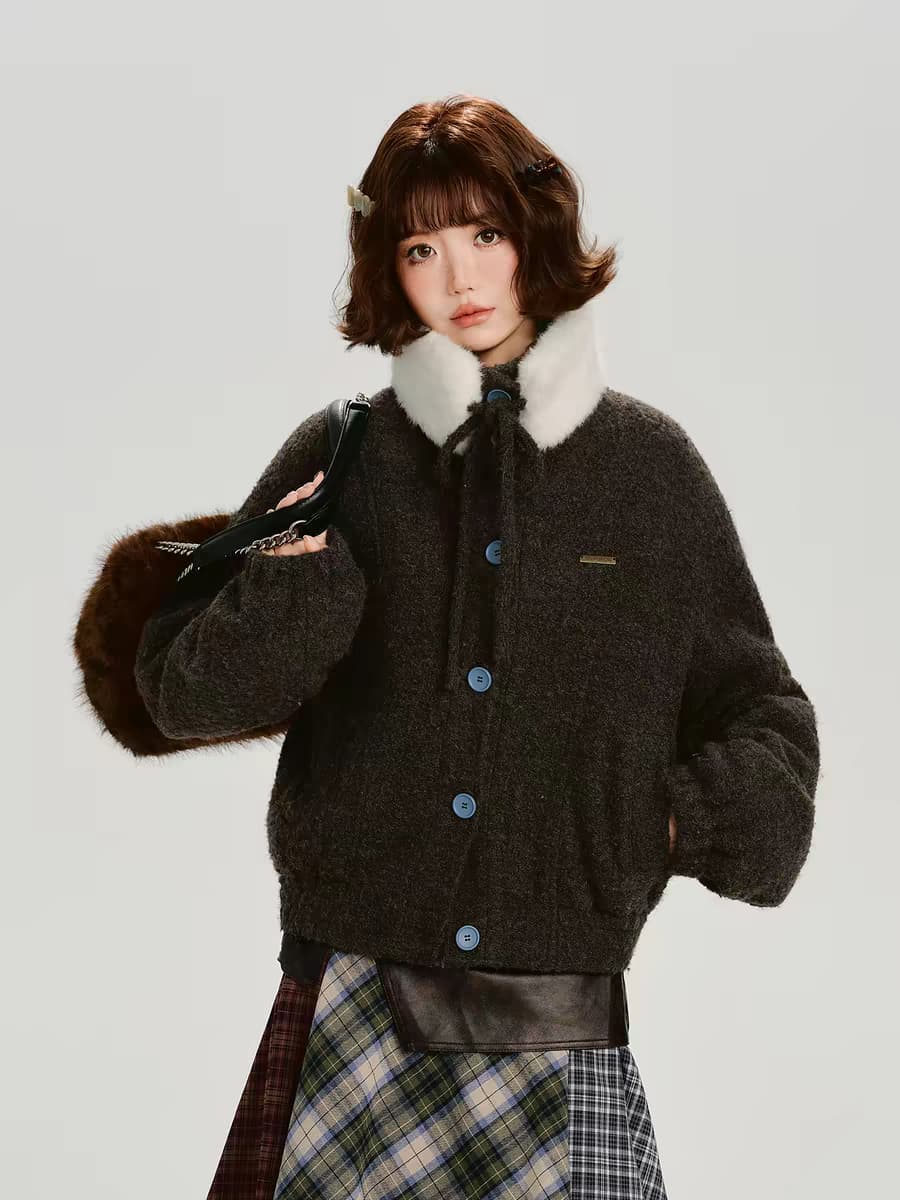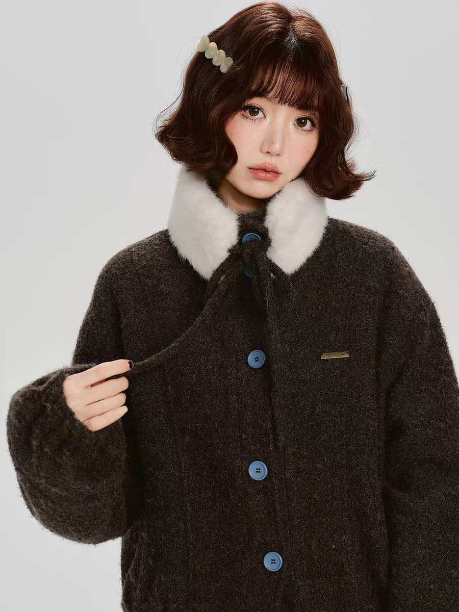 Тёплое пальто на пуговицах от Girlyhalo с мягкой фактурой и уютным силуэтом. Воротник съёмный и идёт в комплекте - можно носить как с воротником, так и без. Примечание: воротник съёмный, идёт в комплекте. Параметры модели: • Рост: 163 см • Вес: 45 кг • Объемы (грудь/талия/бедра): 76/58/82 см • Размер на модели: S Состав: • Основной материал: 55% полиэстер, 15% шерсть, 15% кроличий пух (ангорка), 15% нейлон • Подкладка: 100% полиэстер