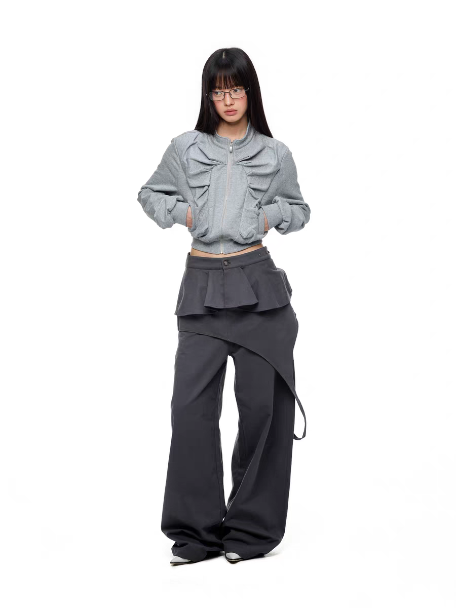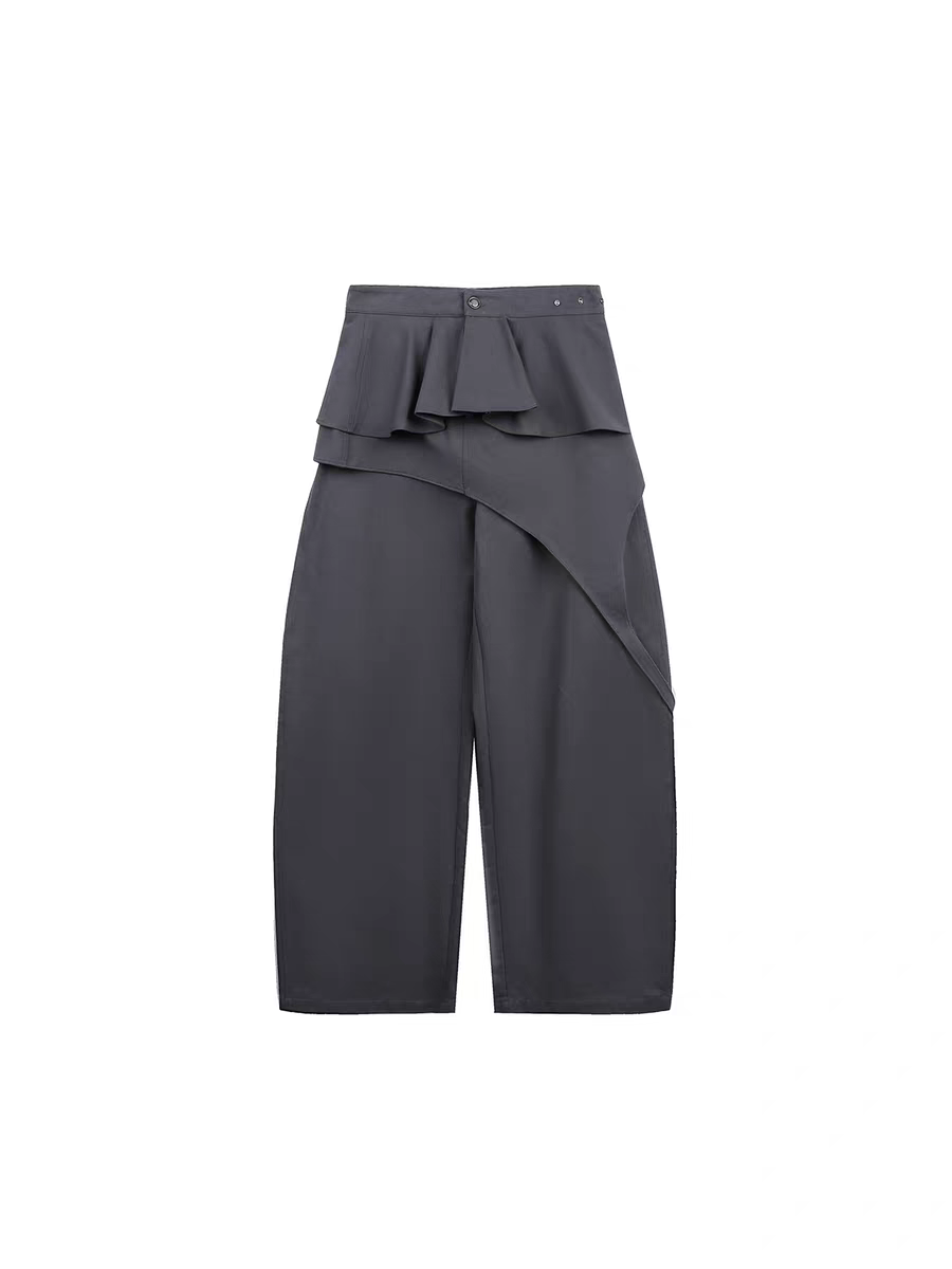 Брюки JIKOO «Туманные строки» со съёмной драпировкой. Параметры модели: • Рост: 168 см, объемы 76/56/85 см, размер на модели M Состав: • 100% хлопок