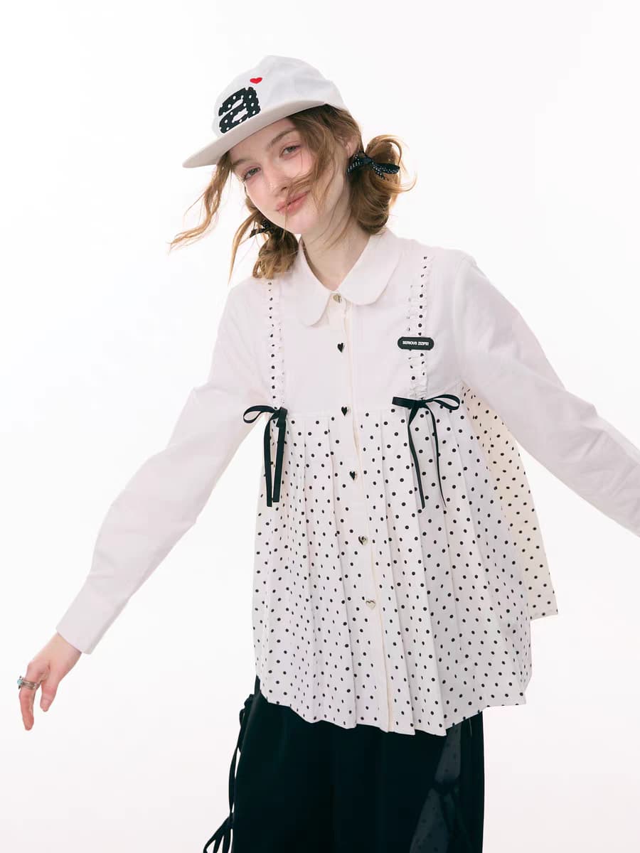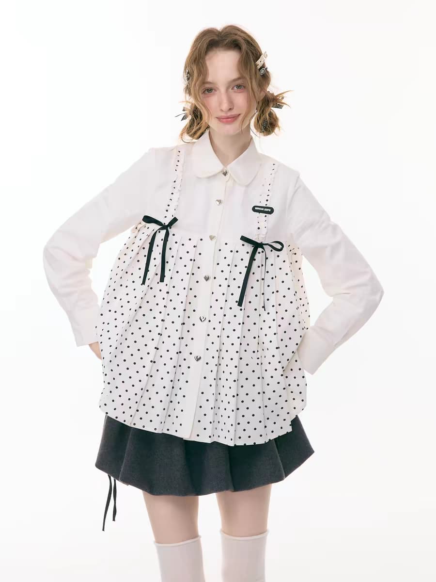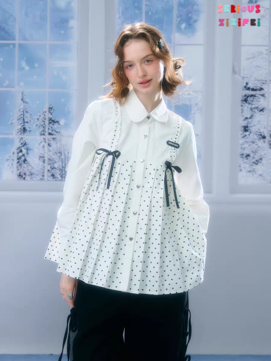 Блуза ziziFei «Входной билет в сказку» с бантом и воротничком в горох - лёгкая и нарядная модель из хлопка. Параметры модели: • Yagucca: рост 173 см, вес 47 кг, объемы 79/59/86.5 см, размер на модели S Состав: • 100% хлопок