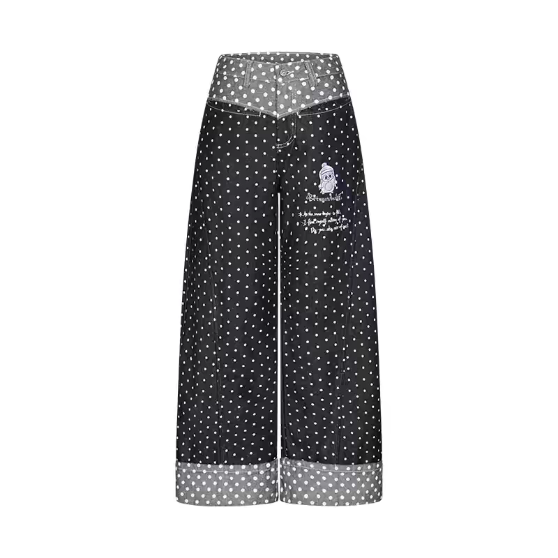 Джинсы BETWEENAND «Снег Хоккайдо» с вышивкой пингвина. Доступны два варианта: стандартный и в горошек. Параметры модели: • Ai: рост 166 см, вес 43 кг, размер на модели M • Chaochao: рост 163 см, вес 44 кг, размер на модели M Состав: • 80% хлопок, 20% полиэстер