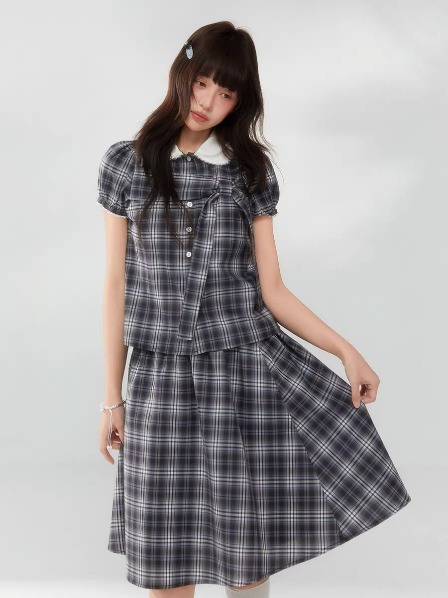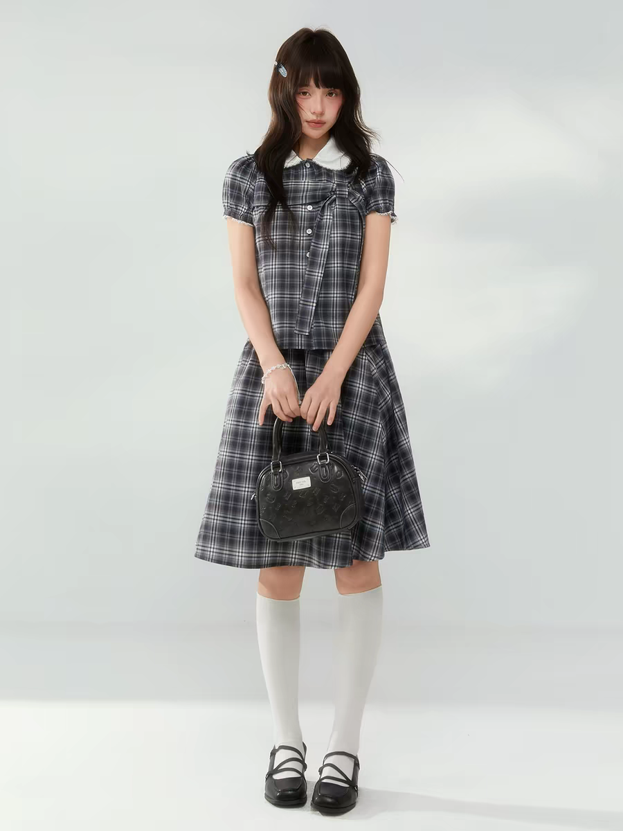 Комплект ECHOSTA «Черно-белая клетка» - топ с воротничком и завязками. Юбка продаётся отдельно.