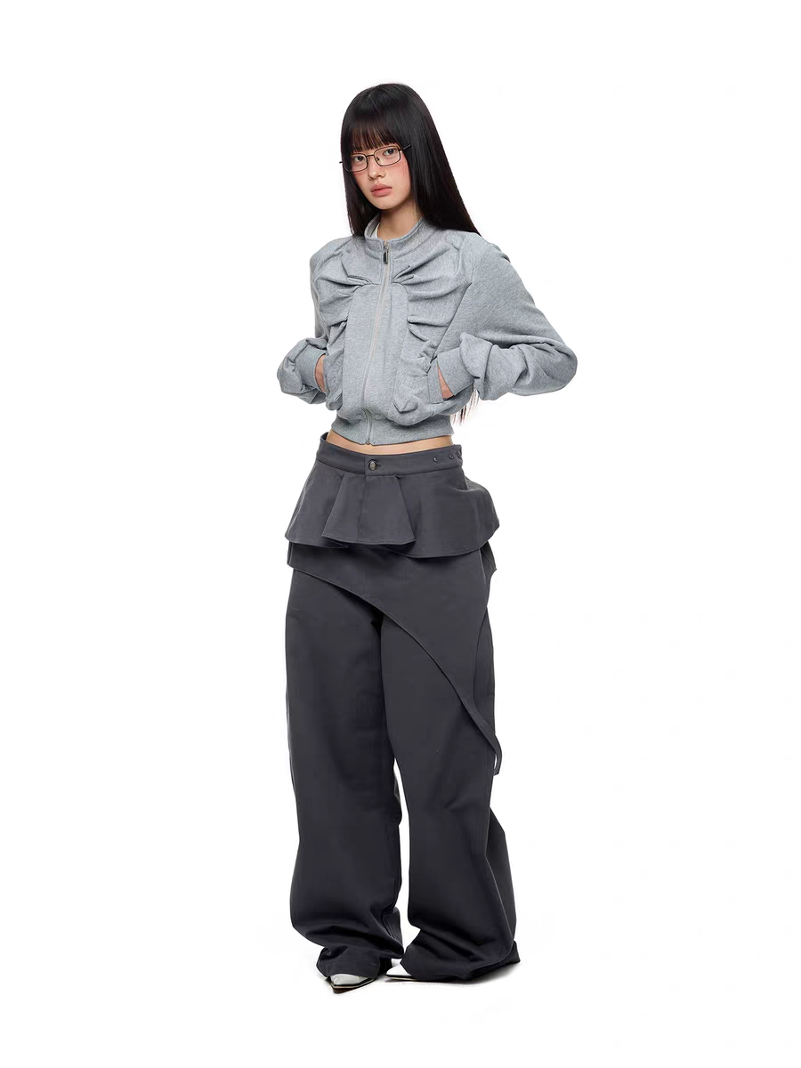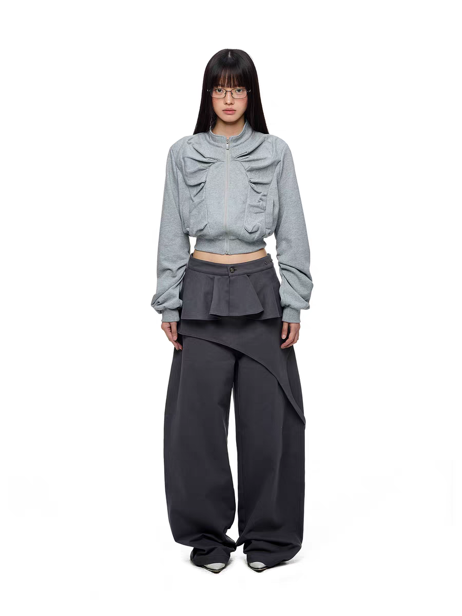 Брюки JIKOO «Туманные строки» со съёмной драпировкой. Параметры модели: • Рост: 168 см, объемы 76/56/85 см, размер на модели M Состав: • 100% хлопок