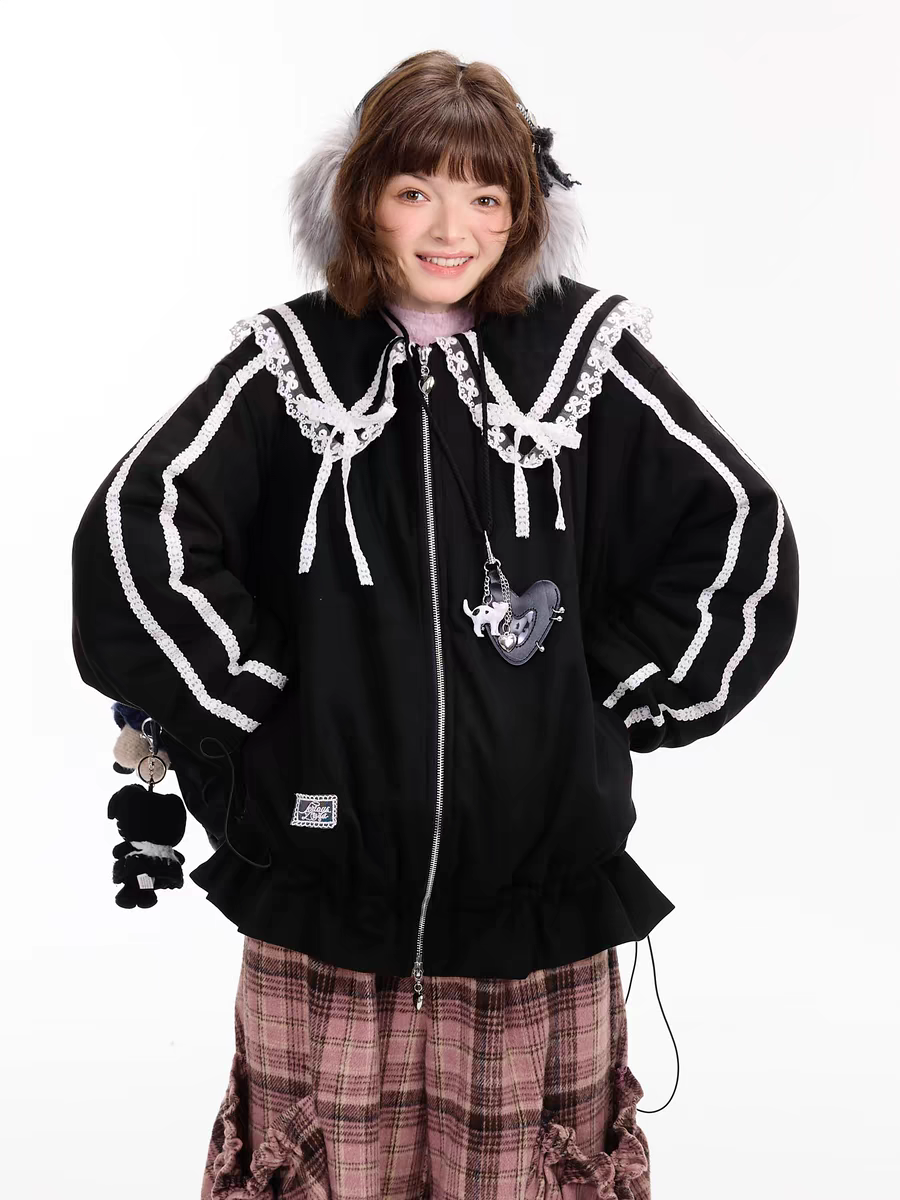 Пуховик ziziFei с кружевом и матросским воротником - тёплая куртка с выразительными деталями. Параметры модели: • Clara: рост 169 см, вес 47 кг, объемы 73/59/89 см, размер на модели S • BB: рост 171 см, вес 47 кг, объемы 74/60/86 см, размер на модели S Состав: • Внешняя ткань: 95% полиэстер, 5% спандекс • Подкладка: 100% полиэстер • Наполнитель (утеплитель): 100% полиэстер
